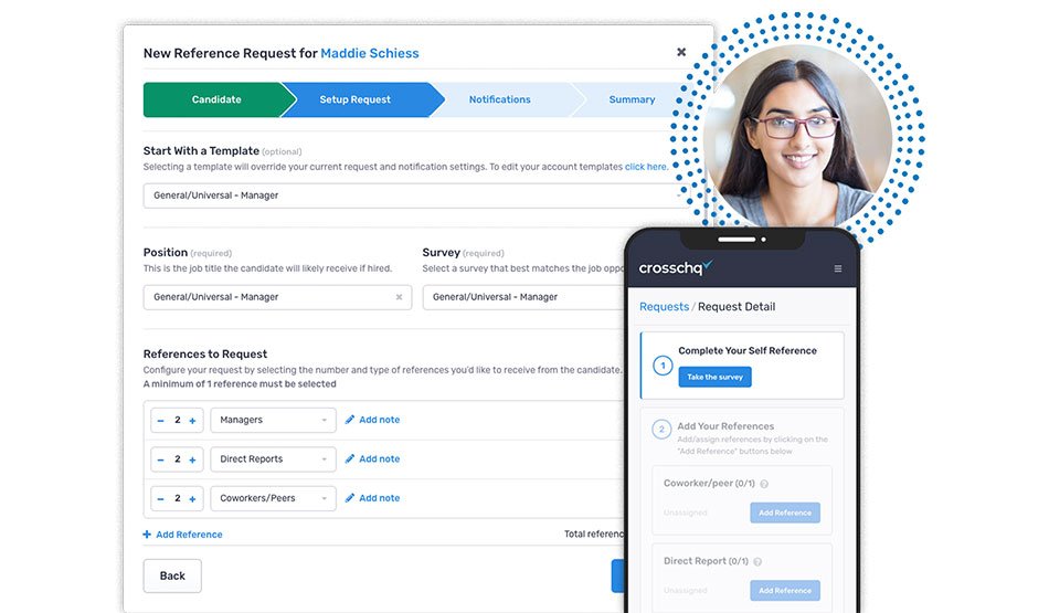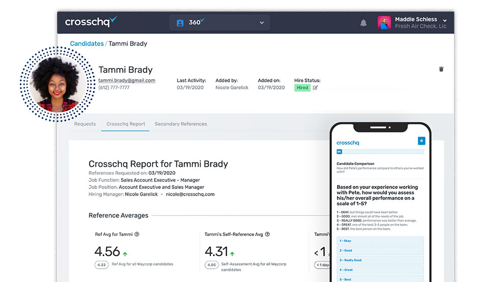- Crosschq’s 360 reference check solution reduces the time and effort it takes for a recruiter to complete traditional reference check by 95%.