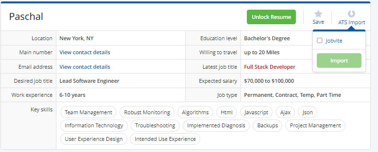 - Seamless integration from Resume-Library to Jobvite, import candidates with 1-click.