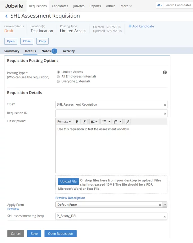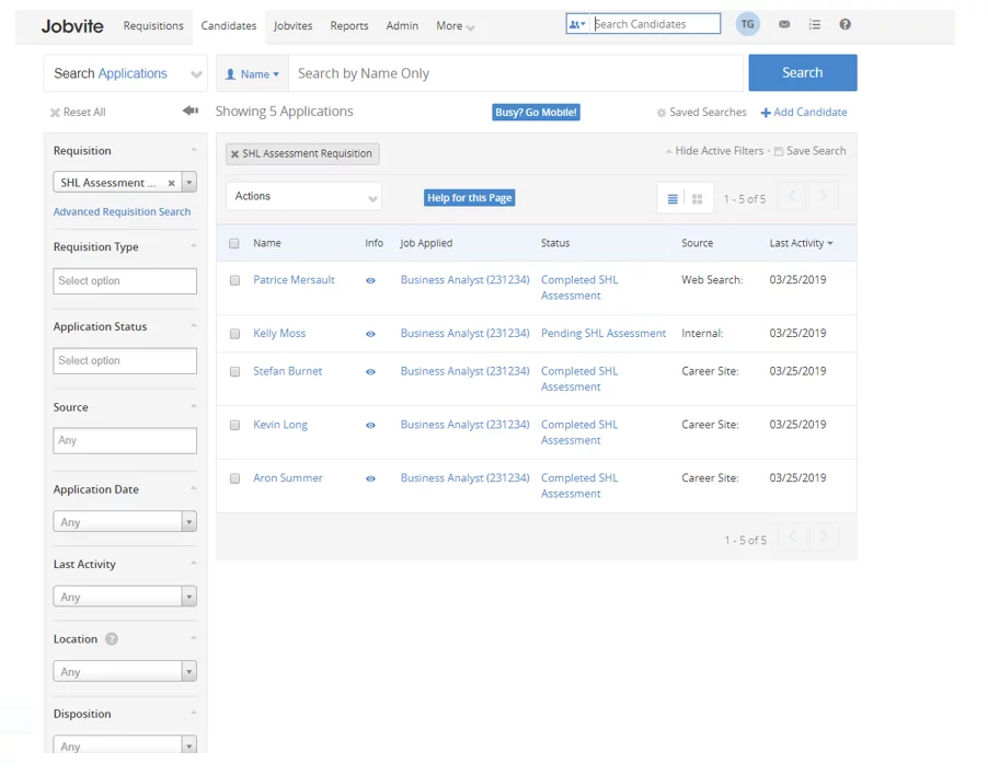 - SHL’s assessment solutions are integrated with Jobvite Hire via Jobvite’s API. When enabled, Jobvite customers can access their SHL assessments from within Jobvite for any candidate. Through the integration, once the assessment is completed, scores and reports are available in the candidate profile within Jobvite Hire.
