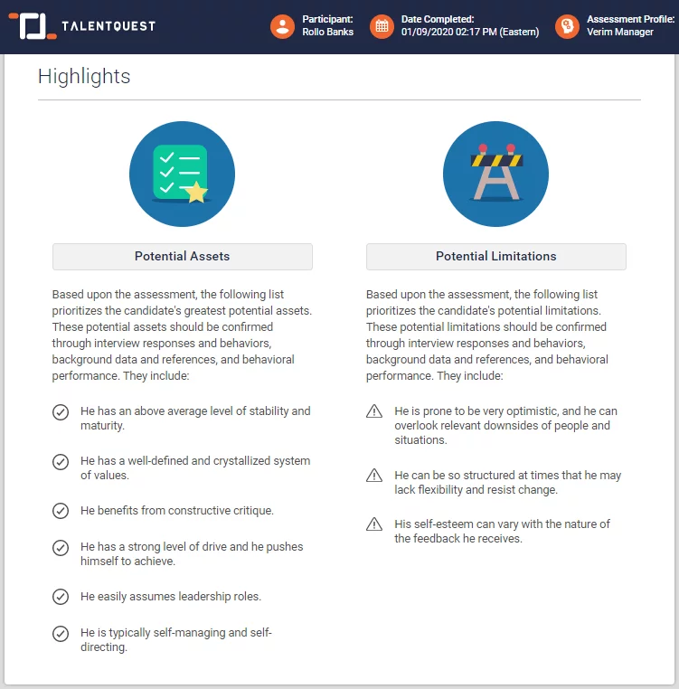 - Our integration automatically launches the TalentQuest Assessment within the candidate workflow which improves the candidate selection and hiring process, helping companies more efficiently hire not only the most suitable candidates, but the best. It also improves the candidate experience.
