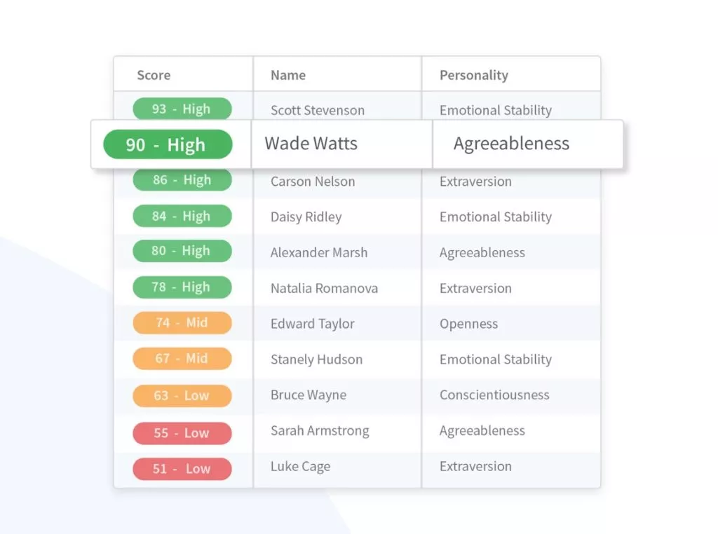 Behind the scenes, Traitify assesses various competencies that are specific to the role you are hiring for. Based on decades of research in personality psychology, Traitify creates customized Ideal Candidate Profiles for each of your workplace roles by evaluating your company’s performance and turnover data alongside its personality results. Integrated into the online job application, Traitify provides role-specific FIT scoring for all applicants entering your funnel. This allows you to prioritize best-fit candidates, reducing time to hire and turnover.