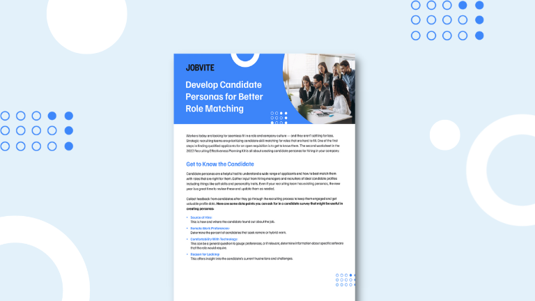 The 2023 Recruiting Effectiveness Planning Kit is filled with hands-on worksheets to help you improve your talent acquisition strategies, take stock of your current programs, and make data-driven plans to drive your talent acquisition strategy in 2023. Get your free copy today.