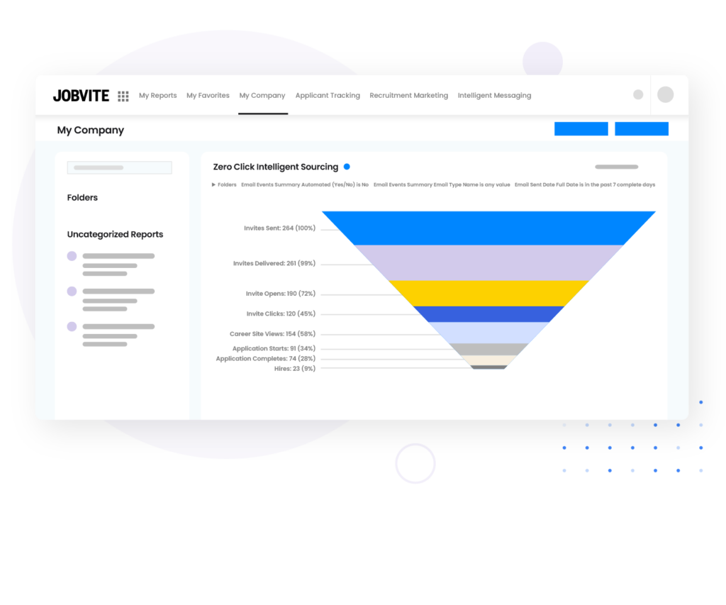Streamlined talent acquisition requires consumer-grade experiences for candidates. Jobvite’s Intelligent Messaging makes it easy to reach candidates where they are through text messaging or career site chatbots. Communicate with job seekers by automating, organizing, sharing, and tracking text conversations. And easily enhance experiences by promoting instant, real-time career site interaction through chatbots.