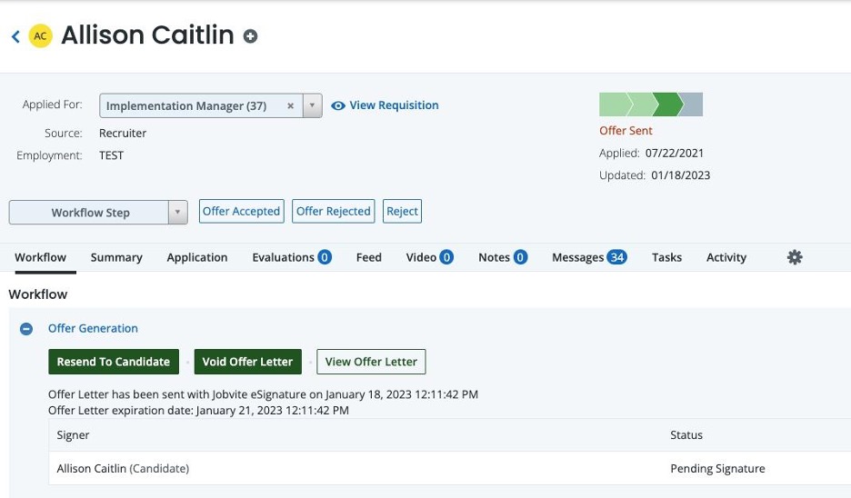 To streamline and optimize the offer generation and signing process, Jobvite’s Evolve Talent Acquisition Suite has a new feature within its ATS & Onboard solution — eSignature. With Jobvite’s new eSignature capability, users can email a link to candidates that will direct them to their Jobseeker Portal.