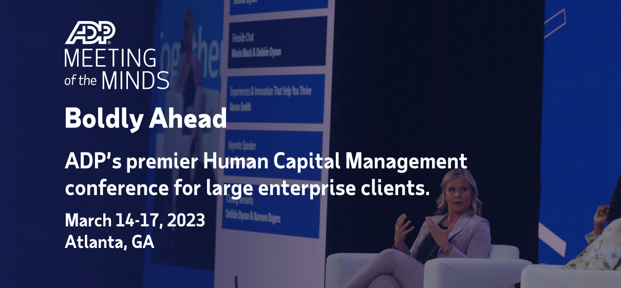 We will be attending ADP’s premier Human Capital Management conference for large enterprise clients. Get exclusive ADP content & experiences, eesigned specifically for ADP large enterprise clients. Prepare your team by equipping them with tools, insights, and resources designed to ready your organization for change, and connect with trusted experts and solutions to provide processes and personalized work that save you time and money. Stop by and see us at booth #22!